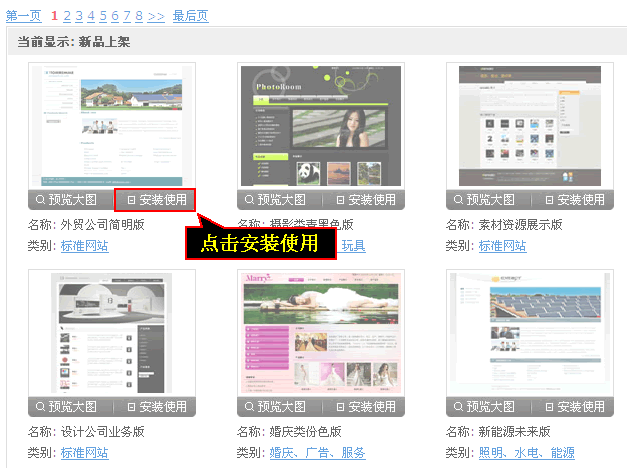 3、选中模板后点击“安装使用”