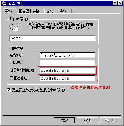 此处填写的是以你的名字为前缀,并以您单位的域名为后缀的标准格式电子邮件。如:xxx@abc.com